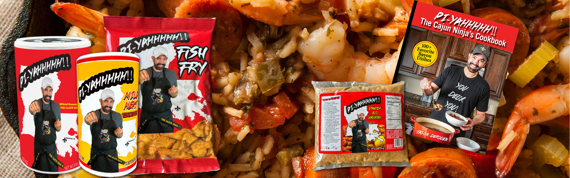 Welcome to The Cajun Ninja’s kitchen! Here, the vibrant flavors of Louisiana come to life with every dish. From mouth-watering spices and seasonings to essential cooking tools and apparel, The Cajun Ninja brings his unique blend of culinary expertise and Southern charm straight to your home. Whether you’re a seasoned chef or a passionate home cook, you’ll find everything you need to create delicious, authentic Cajun meals that will have you saying “PI-YAHHHHH!!” with every bite. Dive into our collection of recipes, discover our premium products, and join us on a flavorful journey through the heart of Cajun country.